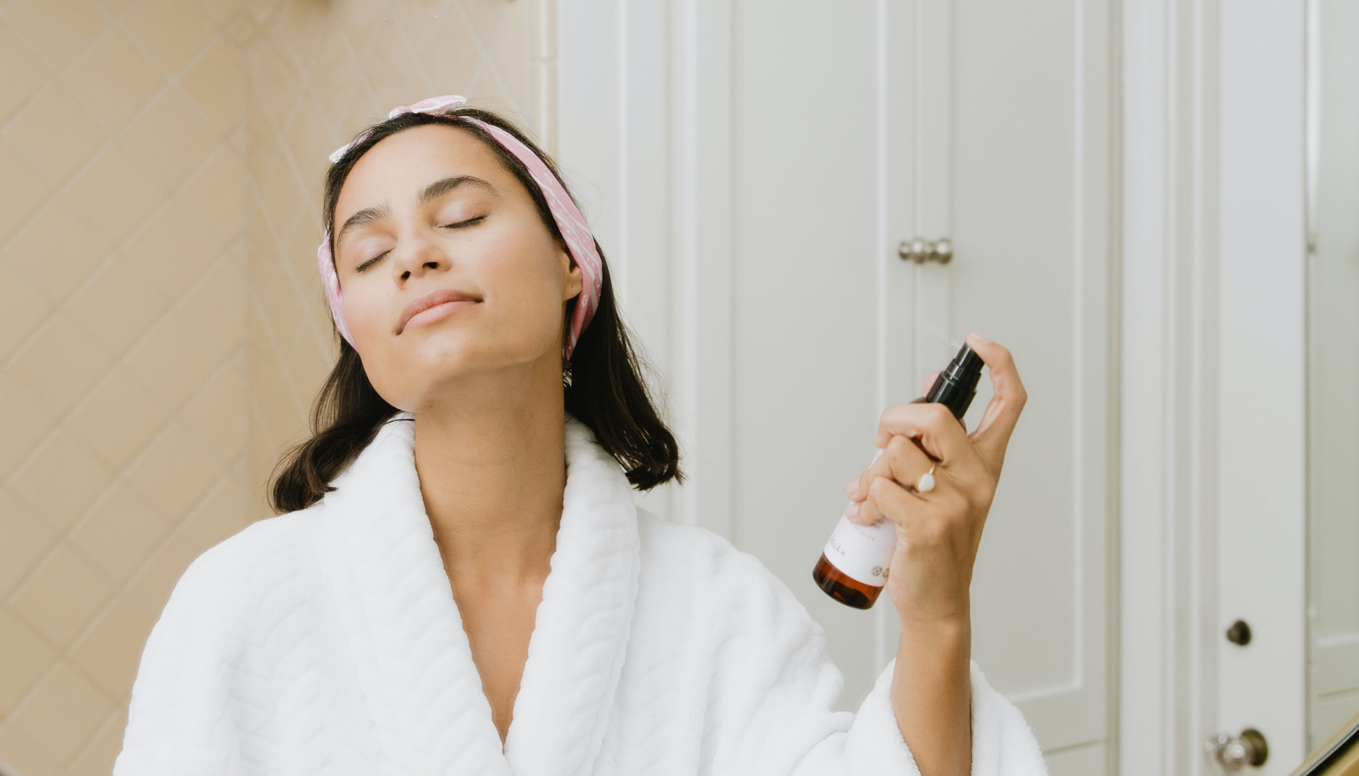 Vaporiser un hydrolat de votre choix pour rééquilibrer le pH de votre peau (voir notre sélection de "Brume Apaisante") et améliorer la pénétration des sérums (si vous n'appliquez pas de sérum après l'hydrolat, séchez délicatement l'hydrolat sur votre visage).
